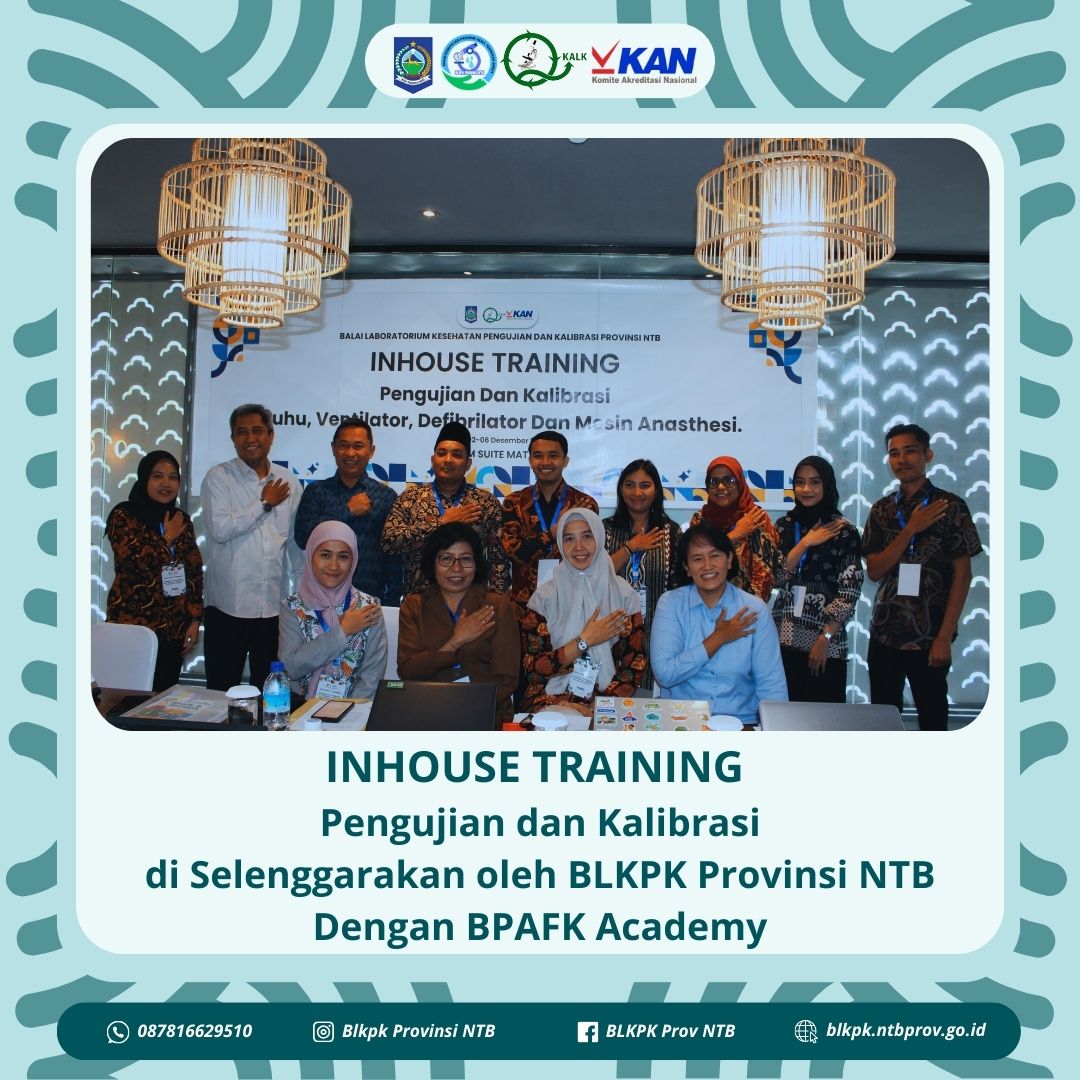 INHOUSE TRAINING PENGUJIAN DAN DAN KALIBRASI DI SELENGGARAKAN OLEH BLKPK PROVINSI NTB DENGAN BPAFK ACADEMY admin 2025-11-27 07:41:24 || 3898