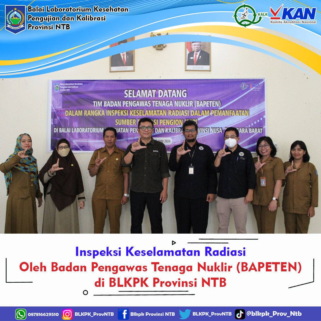 Insepeksi Keselamatan Radiasi oleh tim Badan Pengawas Tenaga Nuklir (BAPETEN) Balai Laboratorium Kesehatan Pengujian dan Kalibrasi Provinsi NTB dalam Pemanfatan sumber radiasi Pengion (SRP) di BLKPK admin 2026-01-23 18:26:47 || 2045