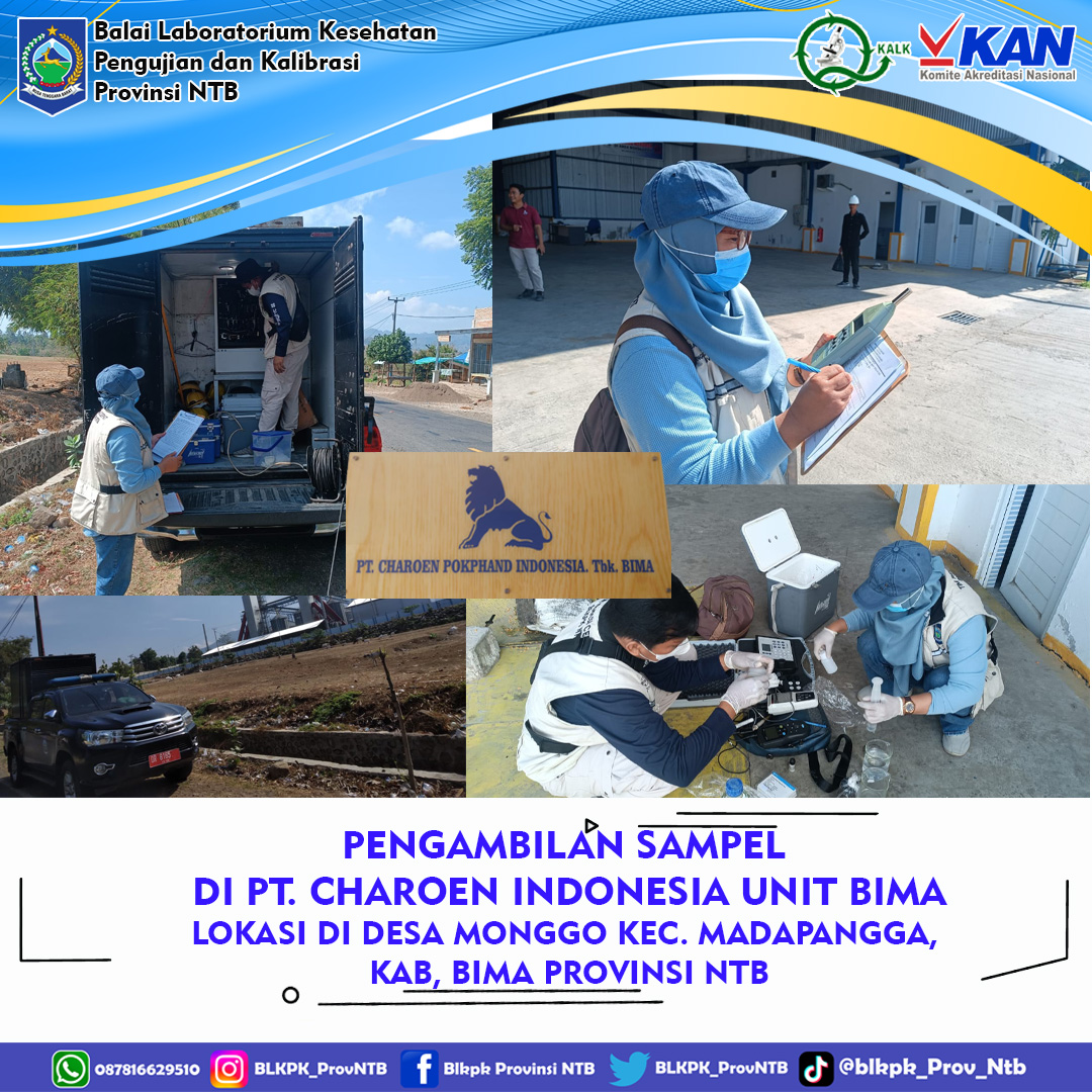 Balai Laboratorium Kesehatan Pengujian dan kalibrasi Provinsi NTB melakukan pengambilan Sampel di PT. Charoen Pokphand Indonesia Unit Bima berlokasi di Desa Monggo, Kec, Madapangga, Kab, Bima, Provinsi NTB. admin 2026-01-25 06:18:54 || 2187